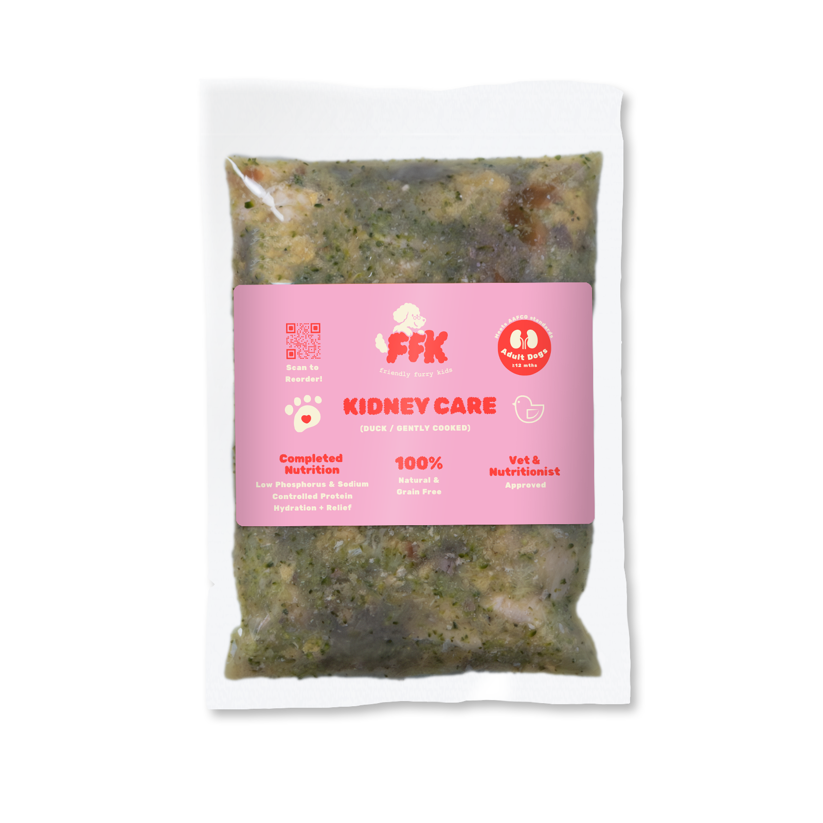 A gentle, vet-approved recipe designed for dogs with early-stage or chronic kidney issues. Using novel protein duck, controlled phosphorus, and antioxidant-rich ingredients, this formula supports kidney function while being easy on sensitive stomachs. Perfect for dogs needing kidney care without compromising taste or nutrition.