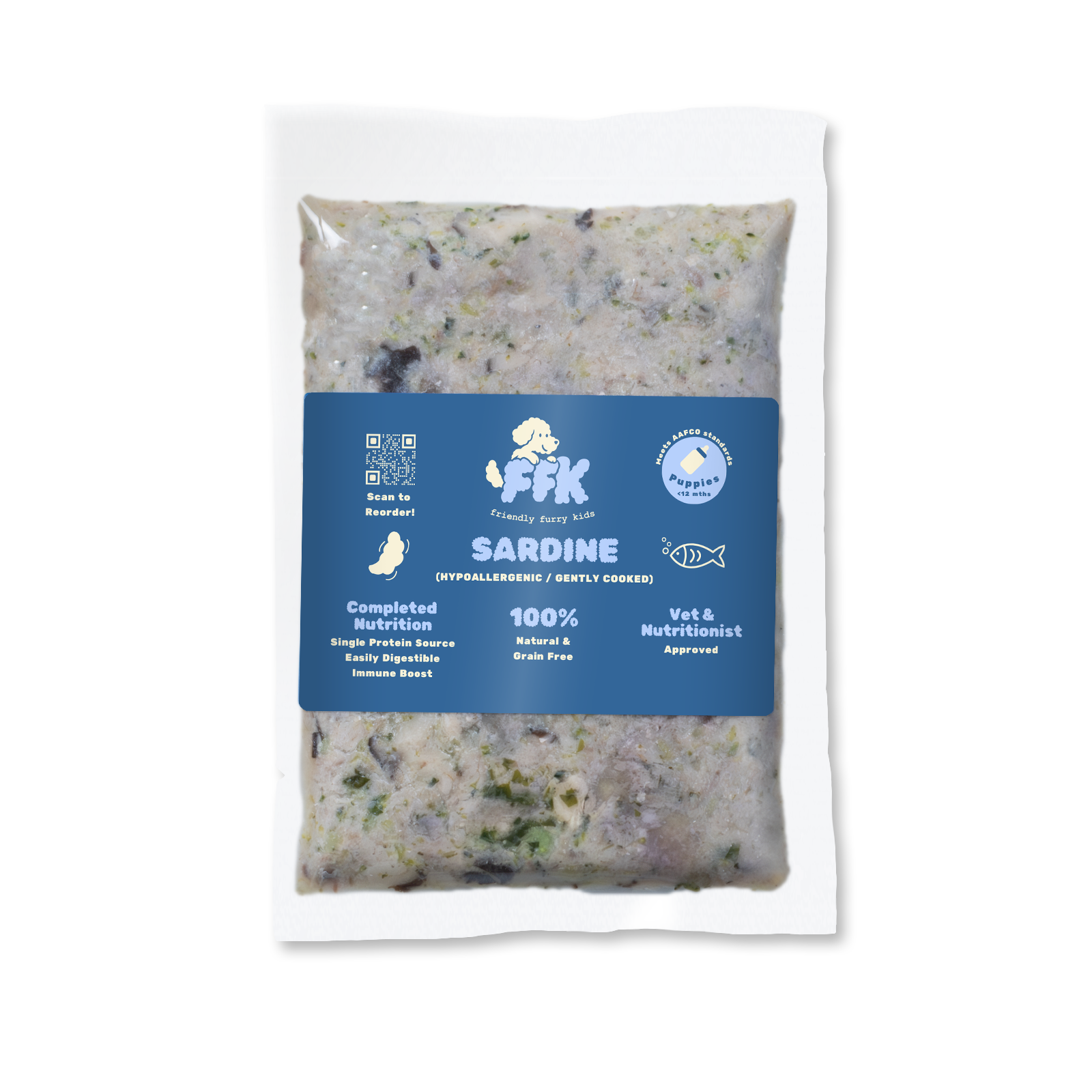 Novel Protein for Sensitivities – Whole sardines provide a gentle, hypoallergenic protein perfect for sensitive digestion and allergy-prone puppies.